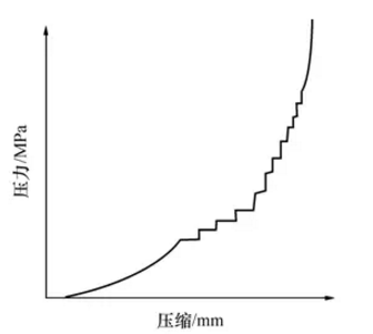 在這個階段中,耐火磚成型壓力已增加到能使泥料內(nèi)顆粒發(fā)生脆性和彈性變形的程度,所以在壓制時由于泥料內(nèi)顆粒受壓變形和多角型顆粒的棱角被壓掉,從而使坯體內(nèi)顆粒間的接觸面增加,摩擦阻力增大。因此,使這一階段的壓制特性表現(xiàn)為跳躍式的壓縮變化,即呈階梯形變化曲線;當(dāng)壓制進(jìn)入第三階段時,成型壓力已超過臨界壓力,即使壓力再升高,坯體幾乎不再被壓縮。下圖的這種耐火磚對模具的要求和壓力機(jī)的選擇都要求很高。